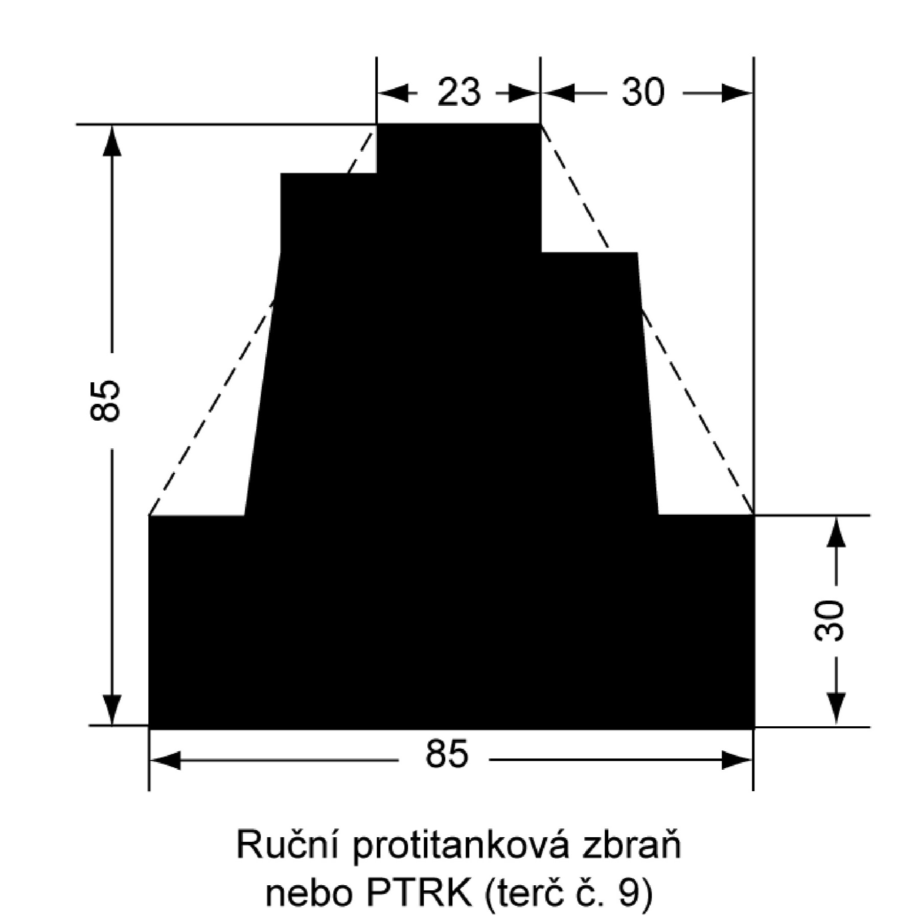 Terč je určený pro střelbu s ručních zbraní i lafetovaných zbraní ráže 5,56 mm, 7,62 mm, 7,65 mm, 9,0 mm a 12,7 mm.
